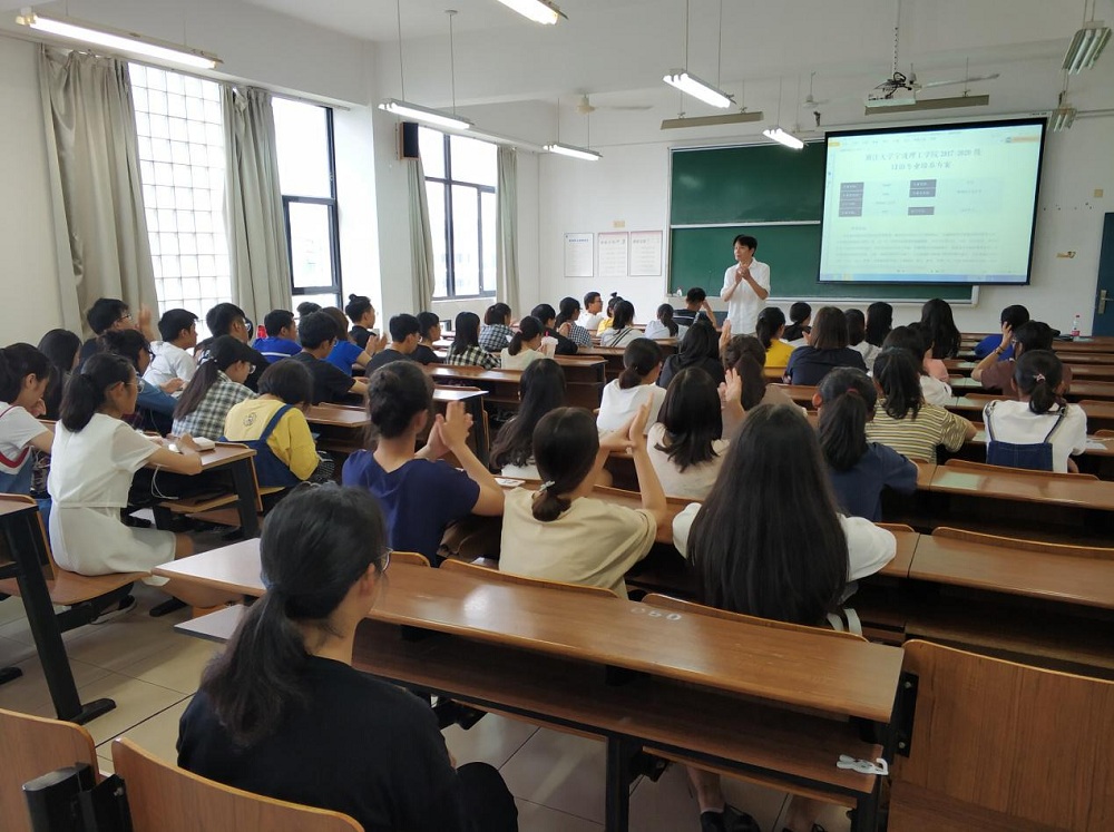 9月21日 下午,日语专业18级新生在SB318教室迎来了始业教育讲座。讲座由我司特聘教授王亨良博士主持,王教授深入浅出,结合18级日语专业培养计划就学习契机、学习方法、学习目标等方面引导同学们进行思考,并与同学们亲切互动。