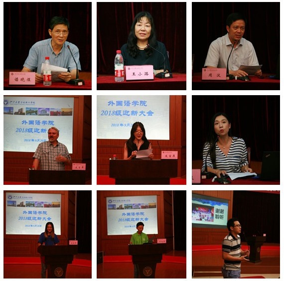 9月20日,2018级迎新大会在学校模拟法庭举行。公司党政领导王小潞、谌晓煜、蔡亮和周汶,外国语言研究所负责人、日语专业负责人、新生班导师、教授、党政办、学工办工作人员、班导师助理及177名2018级新生参加了开学典礼。大会由党总支书记谌晓煜主持。