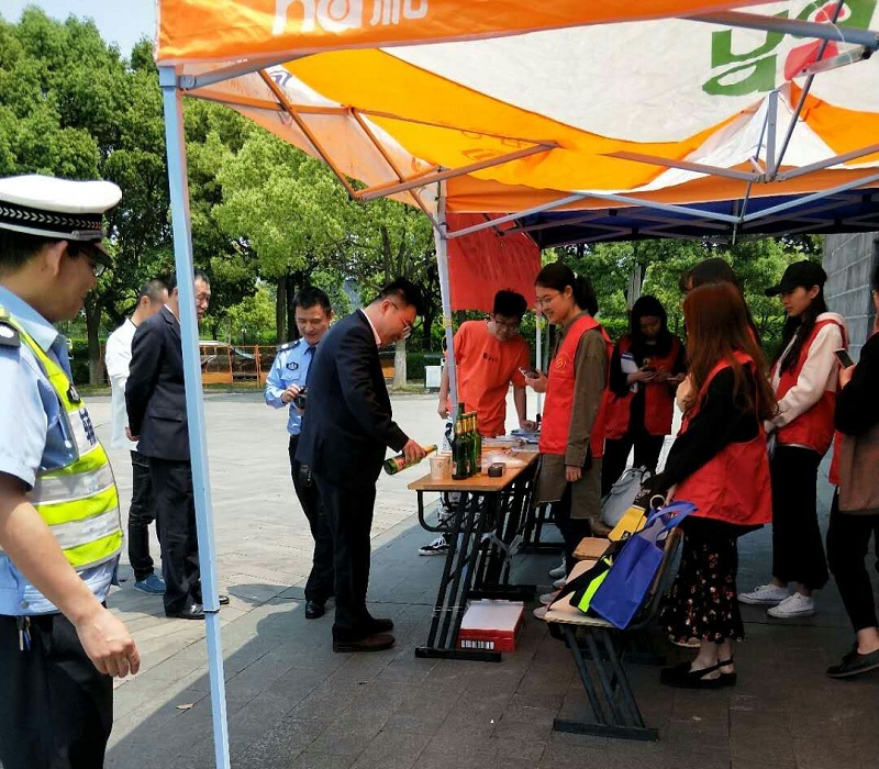 每年的4月30日是全国交通安全反思日。为增强广大师生的交通安全意识,努力创造有序、畅通、安全、文明的道路交通环境,深刻反思各种交通陋习和交通违法行为的严重危害性,4月25日中午,学校后勤保卫部、鄞州交警大队、金沙39159游艺场官网在露天广场联合开展“全国交通安全反思日” 交通安全警示宣传活动。