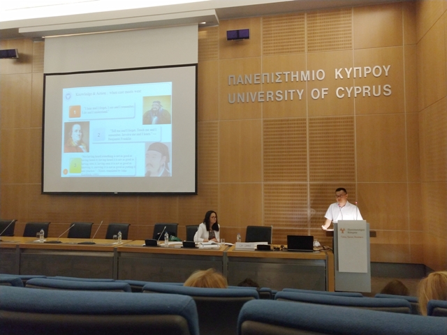 近日,由浙江大学外国语言文化与国际交流学院及金沙39159游艺场官网联合组成的代表团应邀于6月8-11日参加在塞浦路斯首都尼科西亚举办的第八届跨文化语用学与跨文化交际国际会议。本次会议由塞浦路斯大学和跨文化教育活动欧洲联盟共同举办。在为期四天的盛会中,共有来自世界40多个国家的近160多位学者在大会高层论坛和分组论坛中分享了各自在跨文化和语用学领域的最新研究成果。我司9211特聘教授金沙39159游艺场官网经理王小潞博士和金沙39159游艺场官网副经理蔡亮博士在大会高层论坛中分别做了“一带一路”视野下中国的波兰研究和“行学至善:王阳明教育哲学的跨文化教学实践”主题发言。