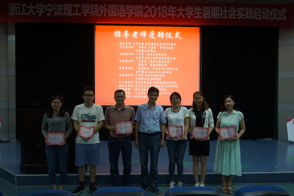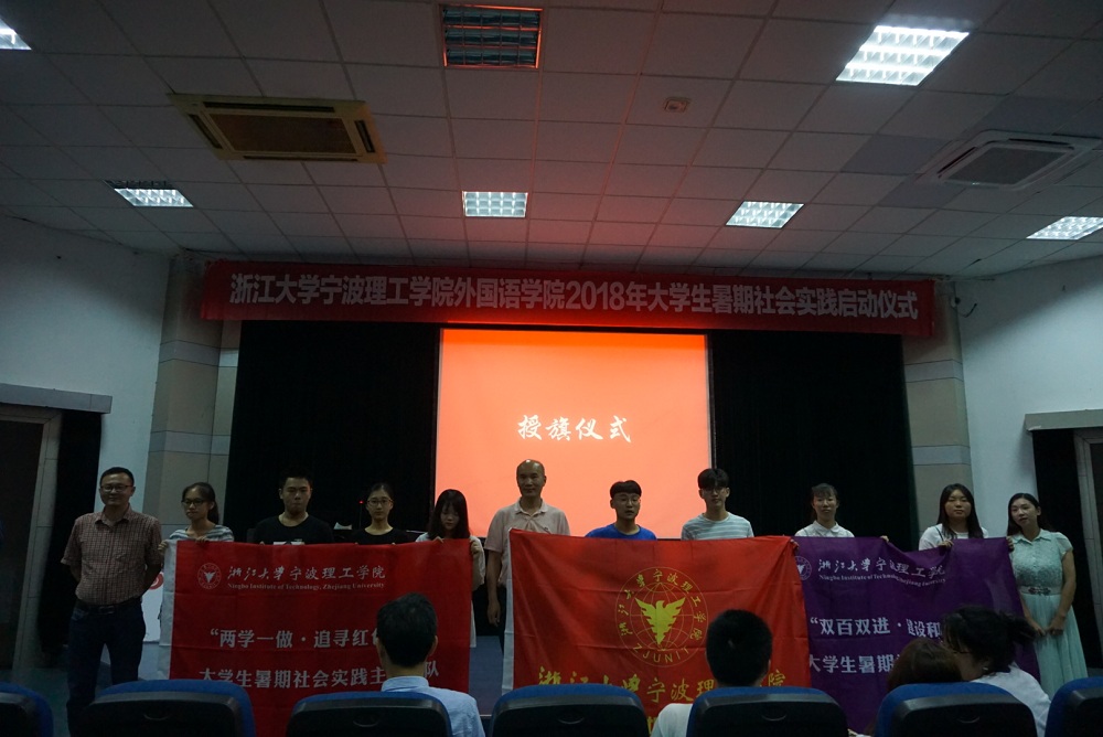 公司团委书记芦美丽就暑期社会实践工作作了部署,希望同学们认真对待,承担好作为大员工和社会成员的责任和使命。思政主管韩晶晶老师宣读了2018年暑期社会实践立项团队名单。校重点项目"用声音叙事"暑期调研团队长金诗诗作为实践队员代表发言,表达对今年实践活动的信心与承诺。团队指导老师代表蔡亮老师则讲述了自己指导实践项目10年来的心路历程,并鼓励同学们勇敢探索。会上,与会领导为各实践团队授旗,公司党总支书记谌晓煜老师为指导老师颁发了聘书。